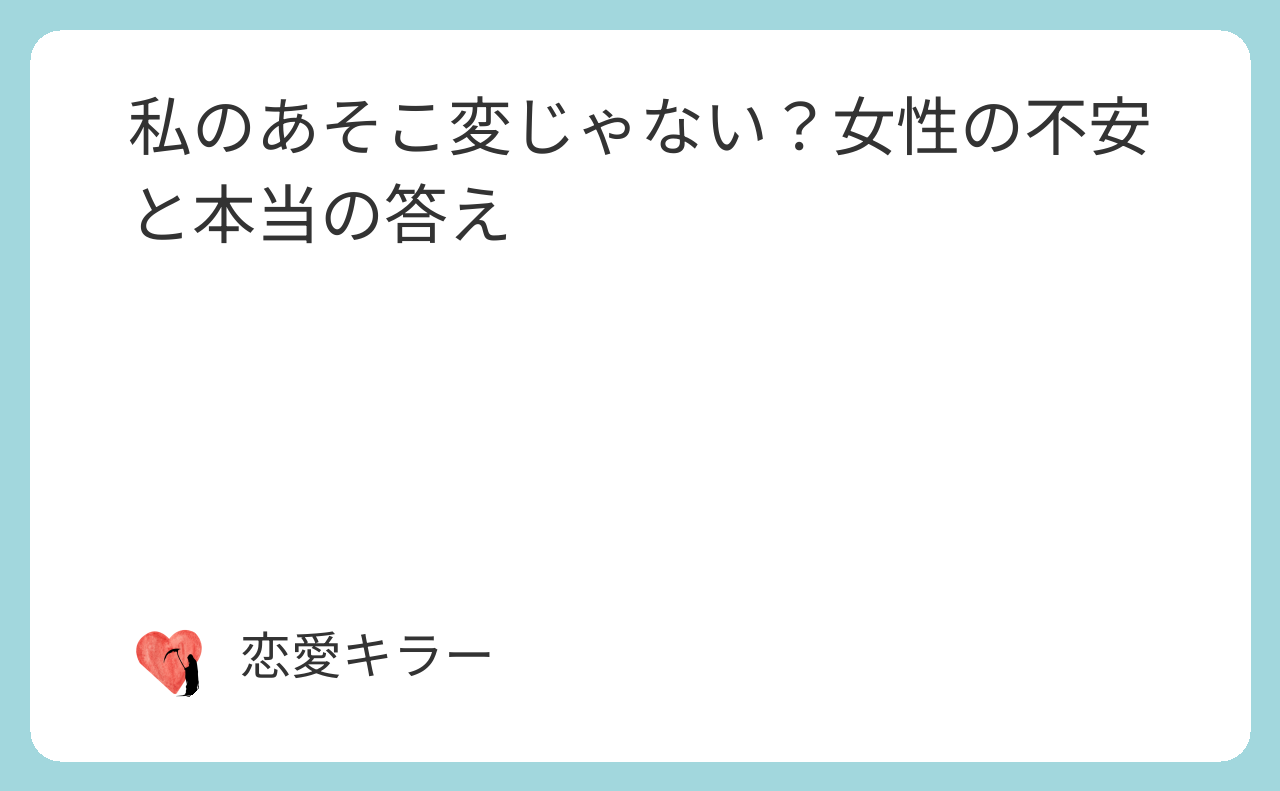 「私のあそこ変じゃない?」って悩む人ほど、ほんとは自分を大切にしたい人です。